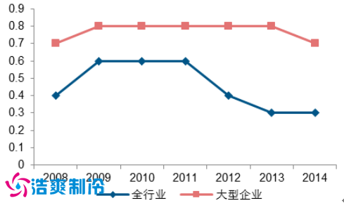 2010-2014 年,企業(yè)總資產(chǎn)周轉(zhuǎn)總體下滑。同時,過高的總資產(chǎn)導致行業(yè)總體 ROE 偏低,雖然國家出臺多項政策支持、政府補貼和出售資產(chǎn)等營業(yè)外收入使得國有大型倉儲企業(yè) ROE 改善,但是企業(yè)經(jīng)營仍然處于困境,2014年大型倉儲的主營營業(yè)收入處于-28%的增長率。
