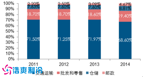 倉儲業(yè)資產(chǎn)比例構成(2014)