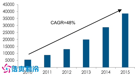 從 2010 年至 2015 年,我國在線零售總額年復合增長率為 48%,2015 年實現(xiàn) 28251億元的規(guī)模。同時,我國在線零售占到社會零售的比例也越來越高,從 2010 年到 2015年,上升了 9.2 個百分點。